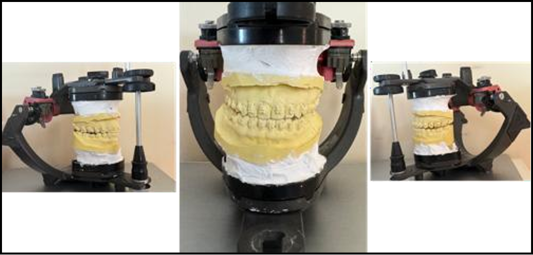 Figure 5: Mid treatment mounted models using facebow transfer and records with fixed orthodontics in plave