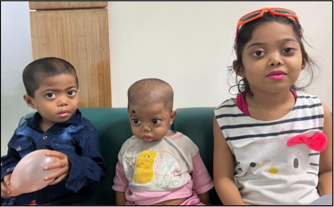 As per Baby X’s condition, Cataract surgery was done on her left eye (I/A with PCIOL under G/A on 26.10.2022) along with other management (Anterior vitrectomy and Peripheral iridectomy). Visual acuity on L/E was 6/9 after the operation. All 3 siblings are now being regularly followed up for any ophthalmological signs/symptoms associated with Stickler syndrome at OPD, Bangladesh Eye Hospital, Dhaka and they are under the care of a multidisciplinary team led by a Neuropediatrician for other manifestations.
