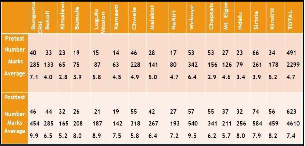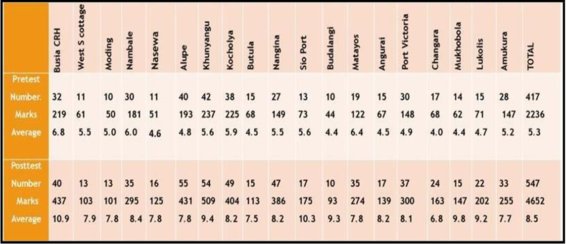 Mr. Paul Obwong, Ms. Velma Olunga and Mr. Davis Nalyanya for their role in the data entry and cleaning as well as the preparation of the power point slides for presentations. Mr. Michael Odawa, Maurice Shilabula and Ms. Faith Yego for their role in the data analysis.